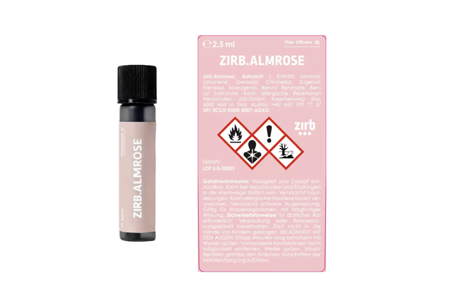 Der ZIRB. Duftkern, aus Rosenblüten kombiniert mit einem Hauch von Zirbe und weitere Noten aus den Tiroler Bergen.