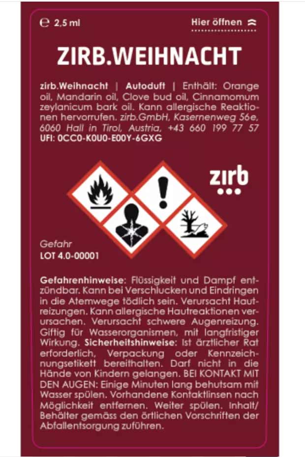 Der ZIRB. Duftkern, mit dem warmen Duft von Orangen, Manderinen, Nelken und Zimt